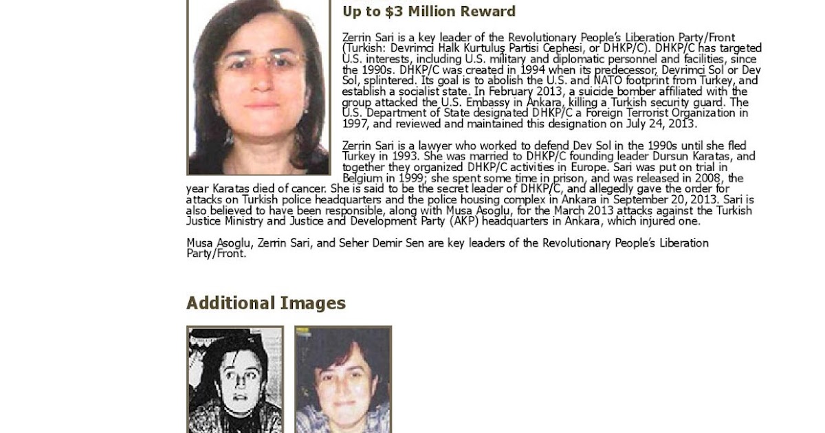 Rewards For Justice Wanted For Terrorism Zerrin Sari